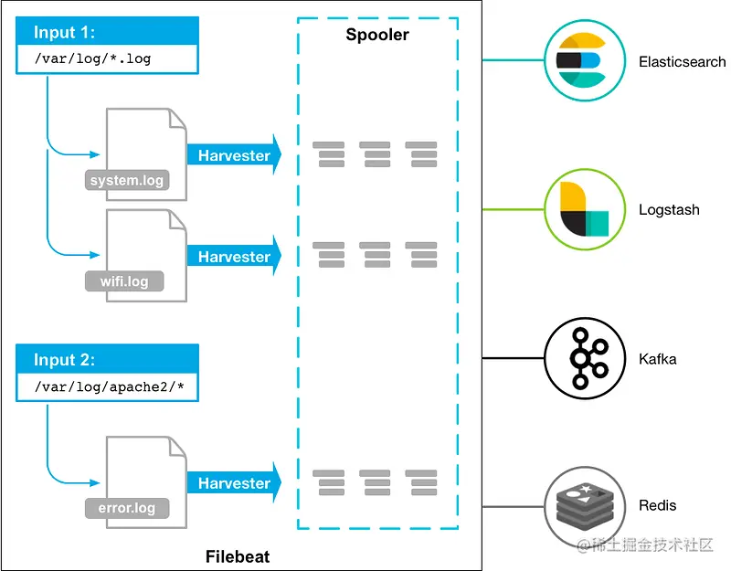 Filebeat是一个高性能的日志采集框架,它主要是以agent模式工作,特点是高性能。用以解决logstash的性能问题,一般我们都会把数据先借助于filebeat采集,并存到redis里,再由logstash对数据进行编辑变换,再输出到es中。