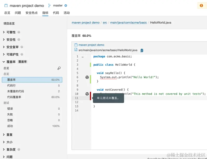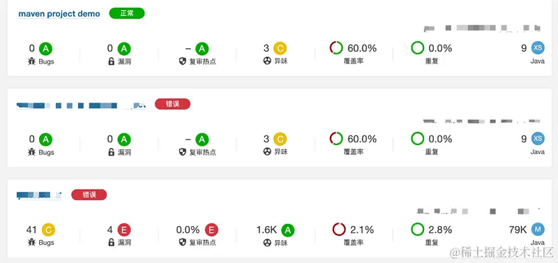 sonarqube 会给我们提供非常详细的代码质量的各个维度的度量结果