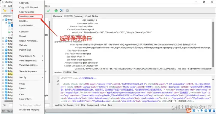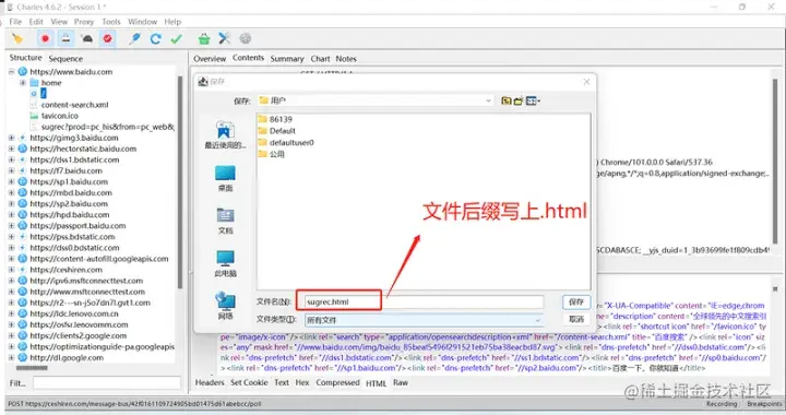 1.先保存接口返回数据,右键单击某接口->点击 SaveResponse ->文件后缀写上 .html