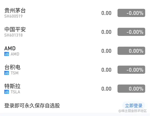 上面这个案例是 Mock 技术相对比较简单的一个应用场景,那 Mock 技术是否可以在App应用上取得同样的效果呢?比如下图,我们要去测试雪球股票界面的列表展示颜色是否会跟随股价的涨跌停进行变化。