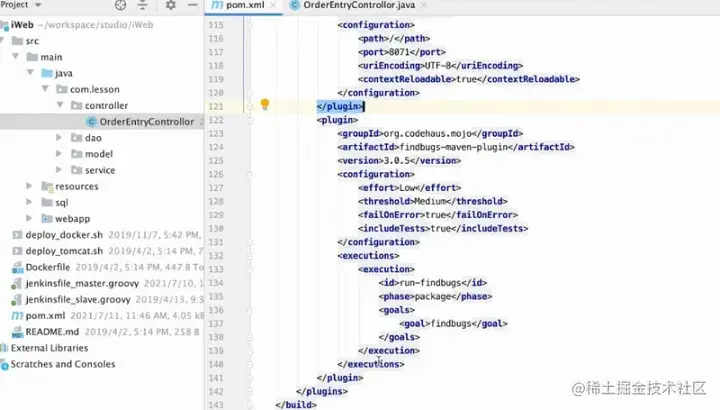 - 在 Maven 项目的配置 pom.xml 文件中需要把 findbugs-maven-plugin 工具配置上。