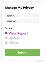 户与按钮,包括供个人数据查看、修改、删除按钮,或者限制处理的目的,拒绝与第三方公 司共享等偏好性设置面板,类似于图 3-4 的左图或右图;