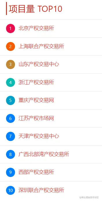 本周交易机构新增披露项目量排名TOP10有:北京产权交易所、上海联合产权交易所、山东产权交易中心、浙江产权交易所、重庆产权交易网、江苏产权市场网、天津产权交易中心、广西北部湾产权交易所、西部产权交易所、深圳联合产权交易所