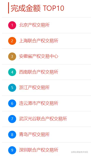 本周交易机构项目完成量TOP10有:北京产权交易所、上海联合产权交易所、西南联合产权交易所、安徽省产权交易中心、青岛产权交易所、连云港市产权交易所、武汉光谷联合产权交易所、浙江产权交易所、深圳联合产权交易所