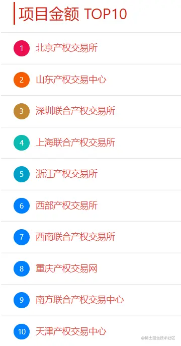 本周交易机构新增披露项目金额排名TOP10有:北京产权交易所、山东产权交易中心、深圳联合产权交易所、上海联合产权交易所、浙江产权交易所、西部产权交易所、西南联合产权交易所、重庆产权交易网、南方联合产权交易中心、天津产权交易中心