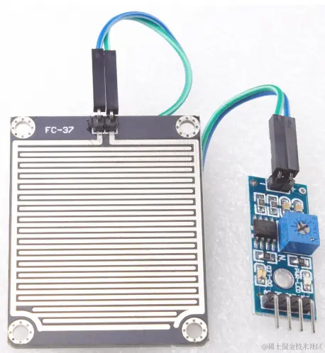 本项目选用雨滴传感器,目的是监测天气状况并转成AO电压输出。
