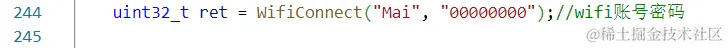 Wi-Fi连接配置:引用开源代码wifi_connect.c函数编写代码,连接Wi-Fi需要用到本地的Wi-Fi账号密码,在balcony.c文件里修改Wi-Fi信息。