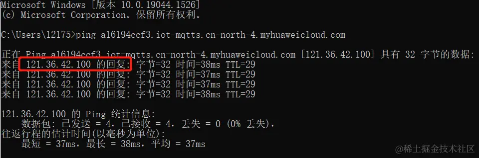 (1)获取华为IoT平台IP地址
