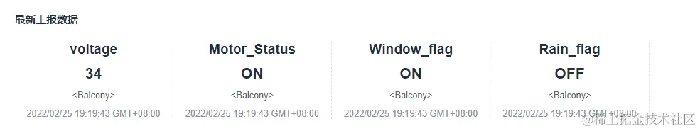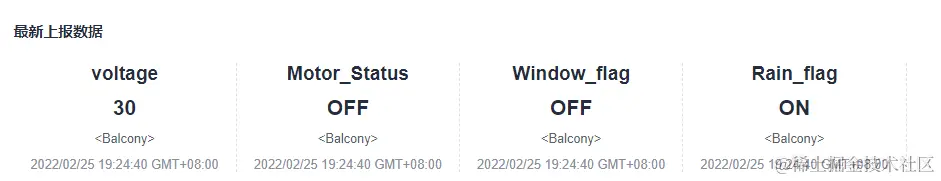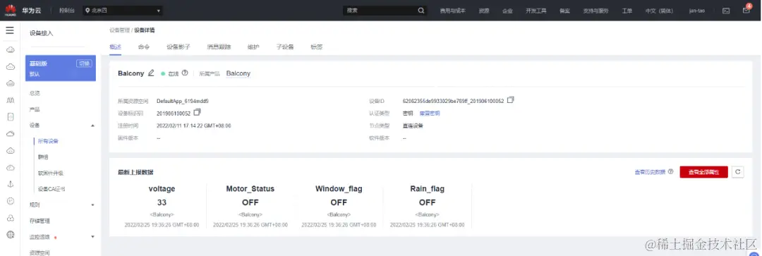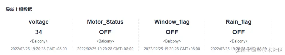华为IoT平台查看到最新的上报数据: