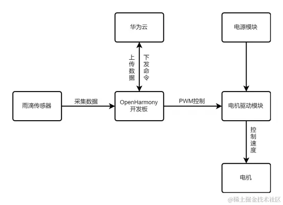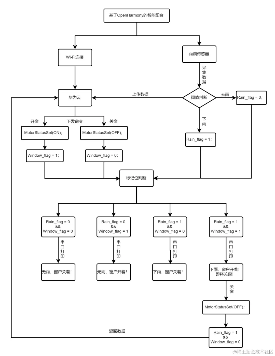 基于OpenHarmony的智能阳台系统流程图如下: