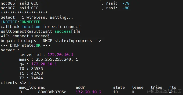 Wi-Fi连接成功串口显示: