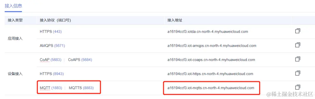 首先在华为IoT平台选择MQTT协议的接入地址,并复制接入地址在PC终端上ping一下该接入地址。得到一个地址为121.36.42.100的IP地址,该地址为华为IoT平台的IP地址。