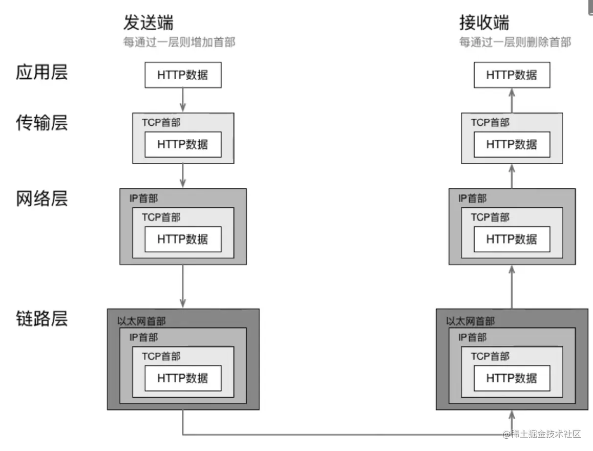 每一个网关和路由也会按照数据链路层的规则将每一个包解开,然后按照自己的规则重新将其封装成数据链路层的包。