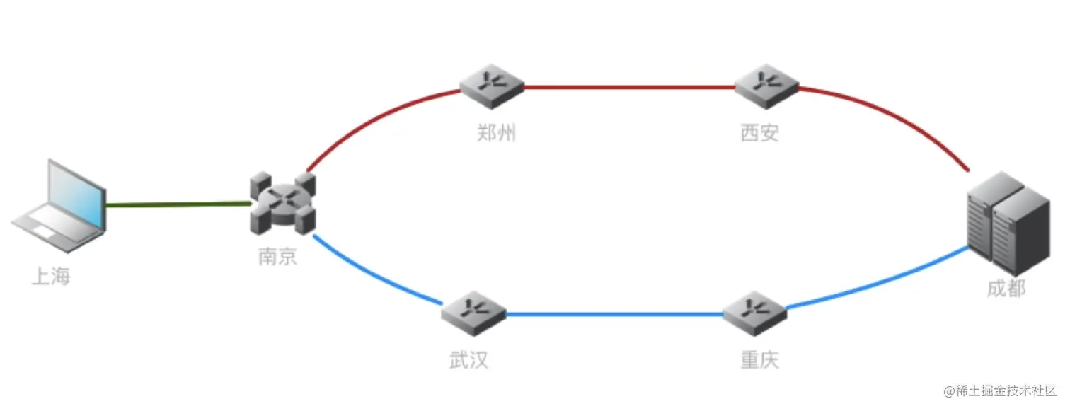 我们在访问服务器的时候,与上图类似,可以有多种路由的选择方式。