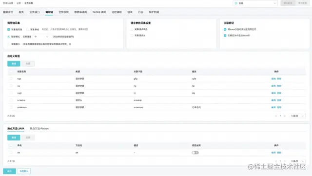 服务和接口识别、自定义热点方法、参数采集、健康度、黑白名单等灵活配置