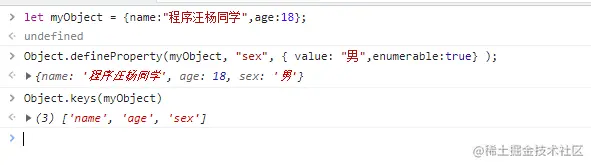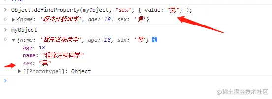 Object.defineProperty(myObject, "sex", { value: "男",enumerable:true} );