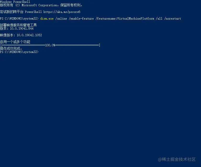 dism.exe /online /enable-feature /featurename:VirtualMachinePlatform /all /norestart