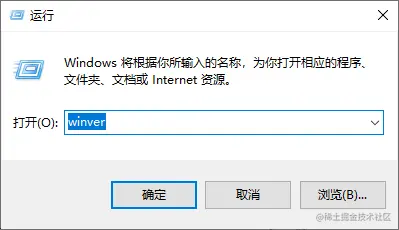 - 检查WSL2的要求:win+R打开运行,然后输入winver检查windows版本\