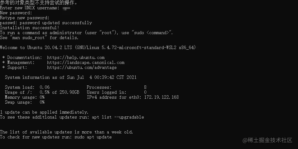 - 打开后设置初始的用户名和密码即可,如果出现参考的对象类型不支持尝试的操作,请重置下网络net winsock reset