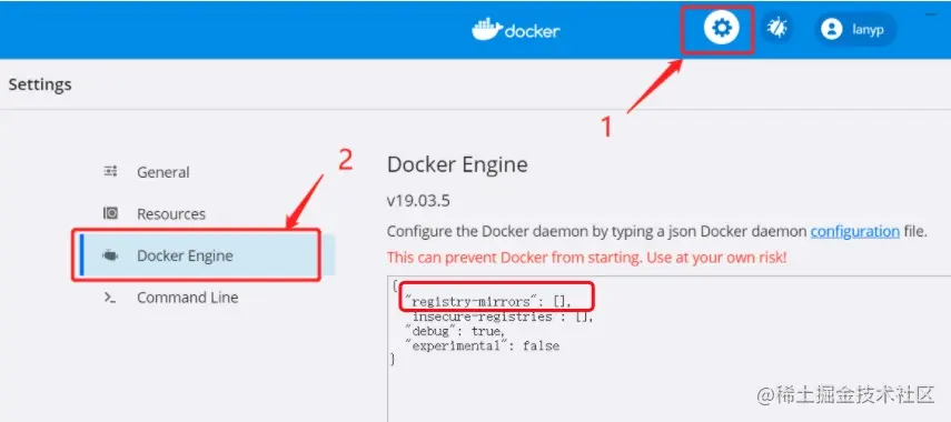 "registry-mirrors": "你的加速地址" 填入docker的 Docker Engine 即可