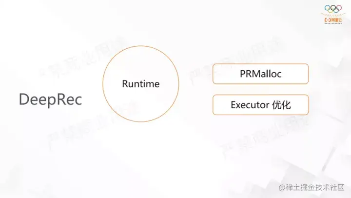 DeepRec的功能主要分为以下五大方面:稀疏功能Embedding,训练框架(异步、同步),Runtime(Executor、PRMalloc),图优化(结构化模型,SmartStage),serving部署相关功能。