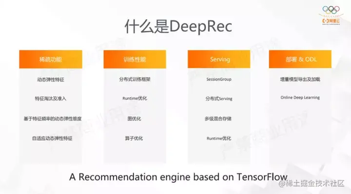 因此我们提出了DeepRec,其功能定位在稀疏场景做深度的优化。