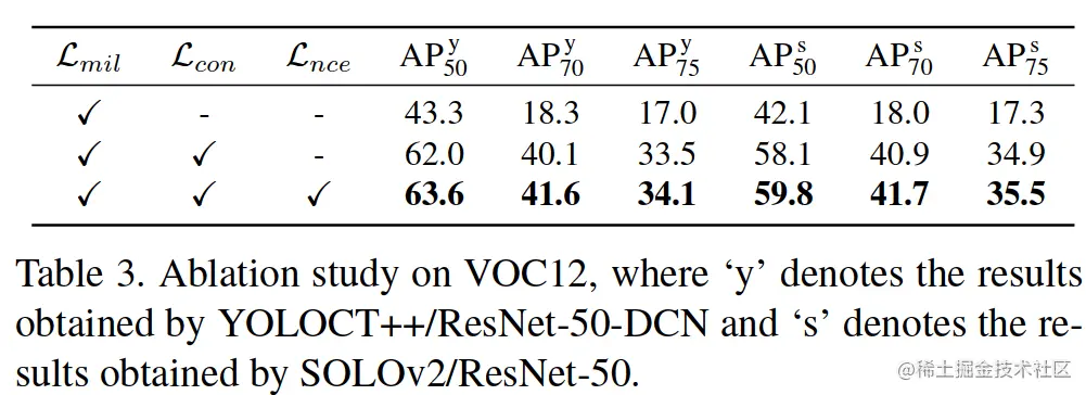 我们使用随机梯度下降 (SGD) 进行网络优化。对于损失权重,我们将 αmil, αcon, αnce 设置为 10; 2;在 YOLACT++ 上为 0:1,并将 αmil, αcon, αnce 设置为 1; 1个; SOLOv2 上 0:1。请参阅附录 C 了解更多实施细节。