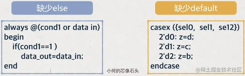 综合器很难解释latch,因此,除非特殊用途,一般避免引入latch.