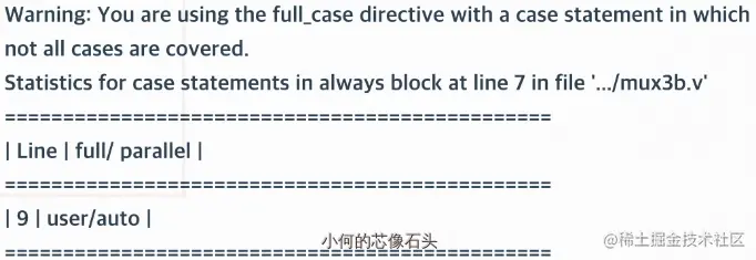 - full-case: 告诉综合器,当前case结构所列条件已完备