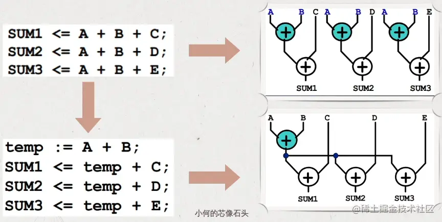若电路中存在较多公共单元,可以通过资源共享来减少面积: