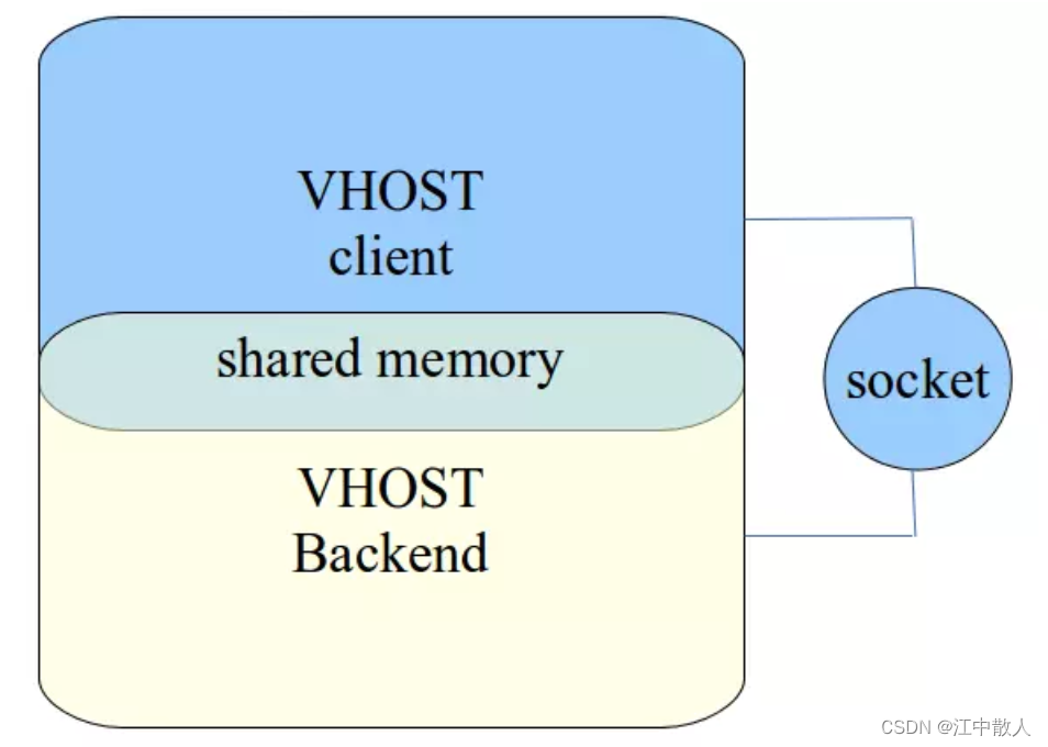 vhost-user 和 vhost_net 的实现原理是一样,都是采用 vring 完成共享内存,eventfd 机制完成事件通知。不同在于 vhost_net 实现在内核中,而 vhost-user 实现在用户空间中,用于用户空间中两个进程之间的通信,其采用共享内存的通信方式。