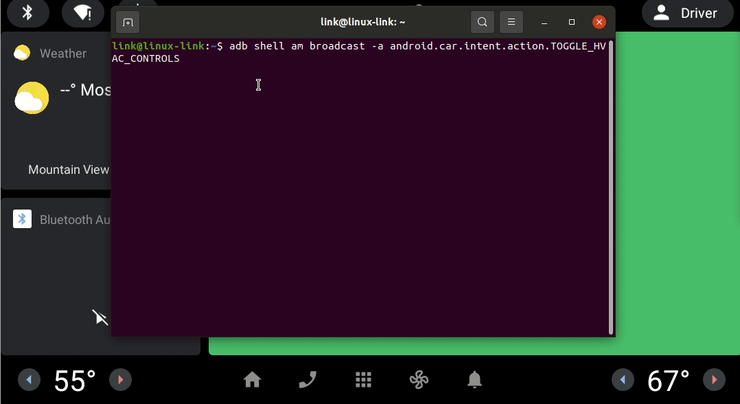 adb shell am broadcast -a android.car.intent.action.TOGGLE_HVAC_CONTROLS