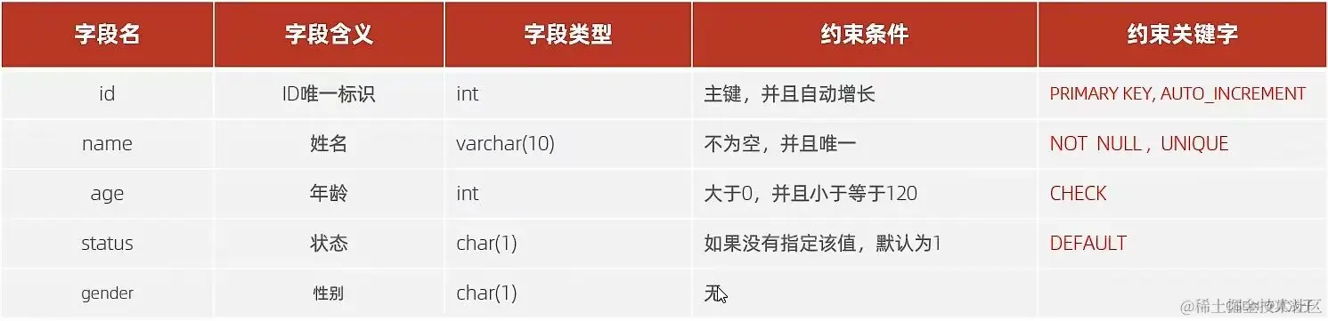 4、注意: 约束是作用表中字段上的,可以在创建表 / 修改表时候添加约束