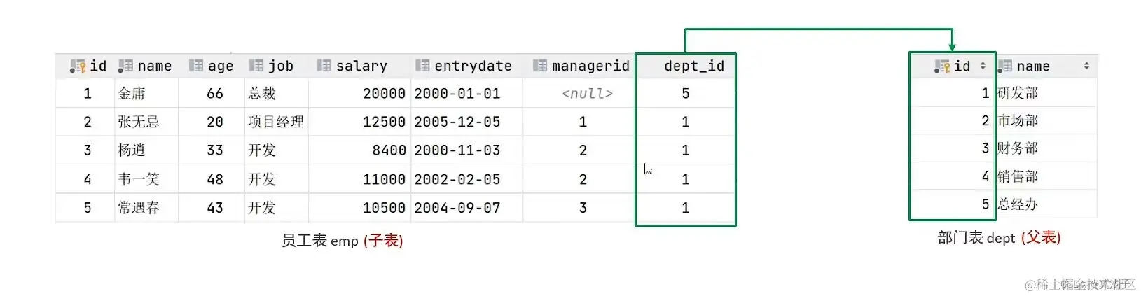 注意:目前上述的俩张表,在数据库层面并未建立外键关联,无法保证数据的一致性和完整性 的。