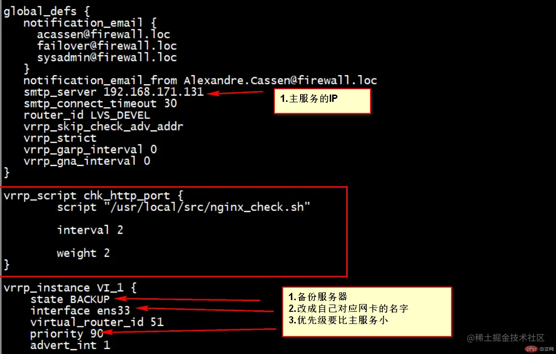 state BACKUP #主服务器写MASTER、备份服务器写BACKUP