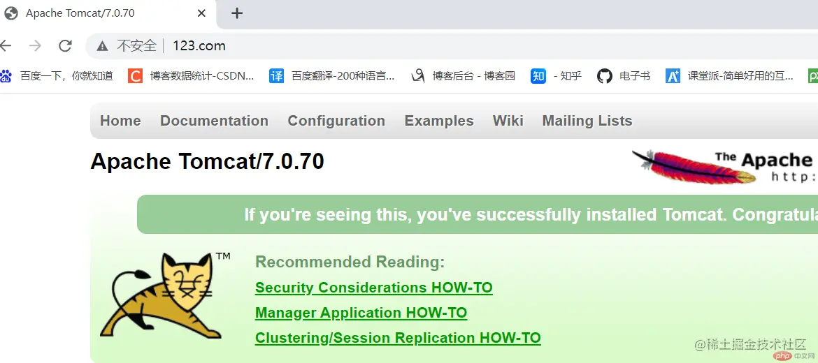 输入www.123.com/ 访问,注意不用添加端口号,默认使用80端口号访问nginx,然后跳转到tomcat服务器,实现反向代理的效果。