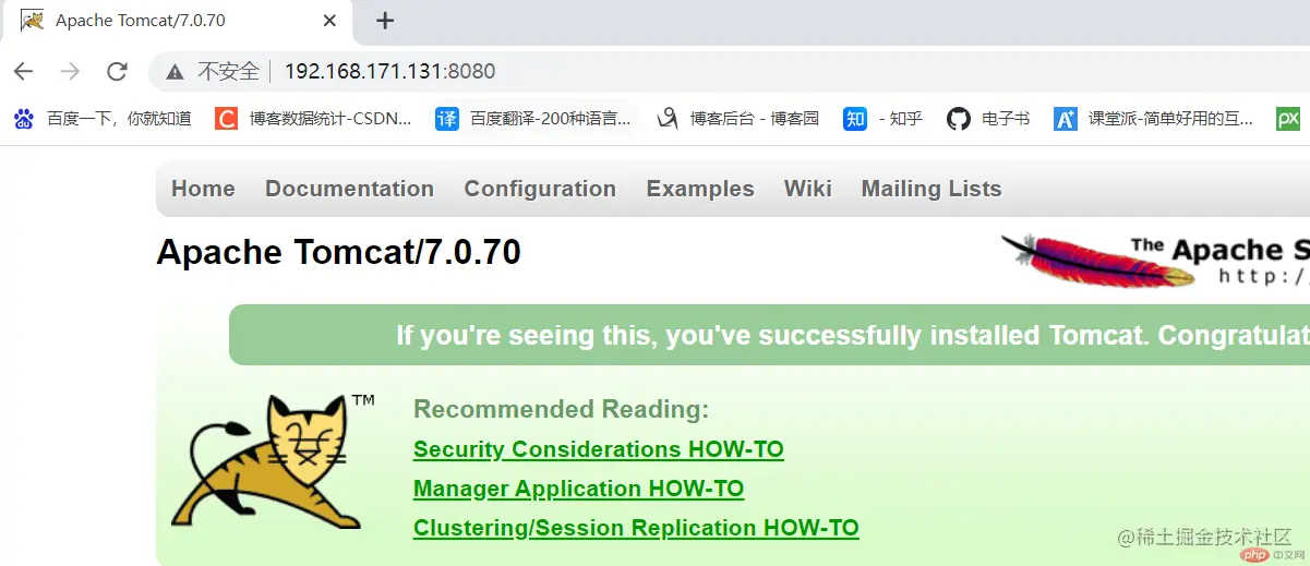 (1)打开浏览器,在浏览器地址栏输入地址xxxxxx(自己的ip),跳转到linux系统tomcat主页面中