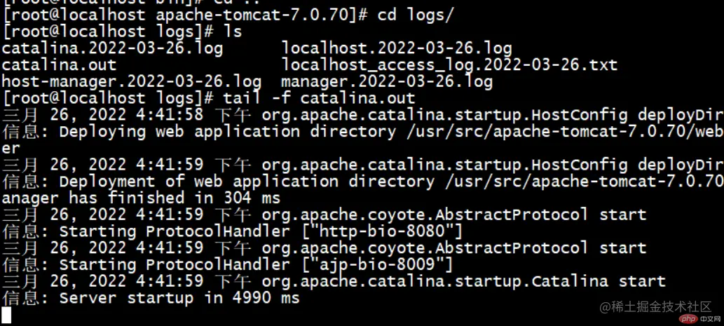 查看启动后的日志文件
