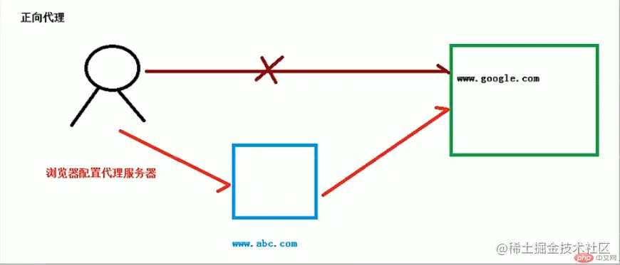 正向代理:在客户端(浏览器)配置代理服务器,通过代理服务器进行互联网访问。