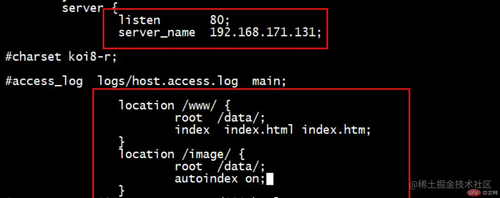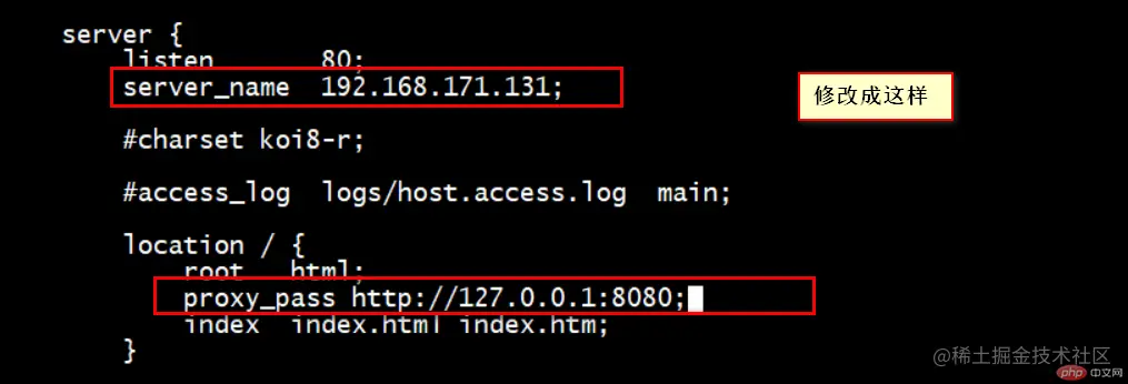修改nginx配置文件如下图: