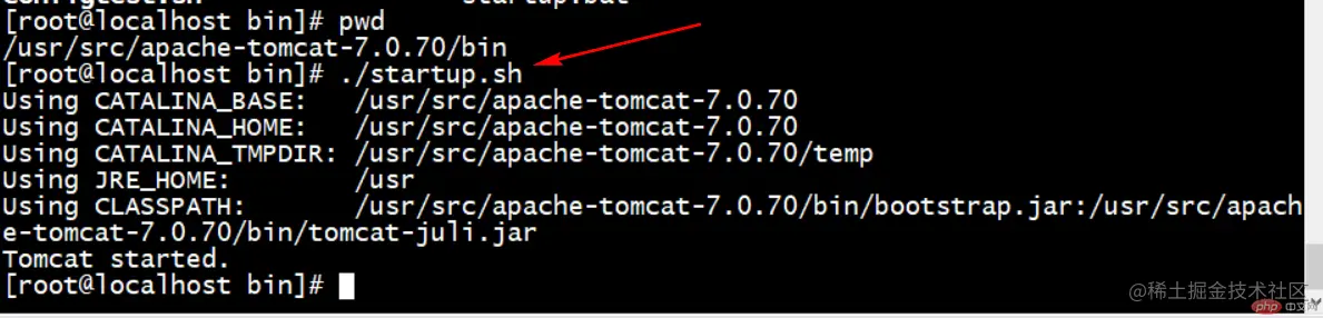 启动tomcat服务器(在Linux系统中,tomcat使用默认端口8080)