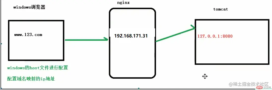 - 在最后面加上 192.168.171.131 www.123.com(根据自己服务器的ip来设置)