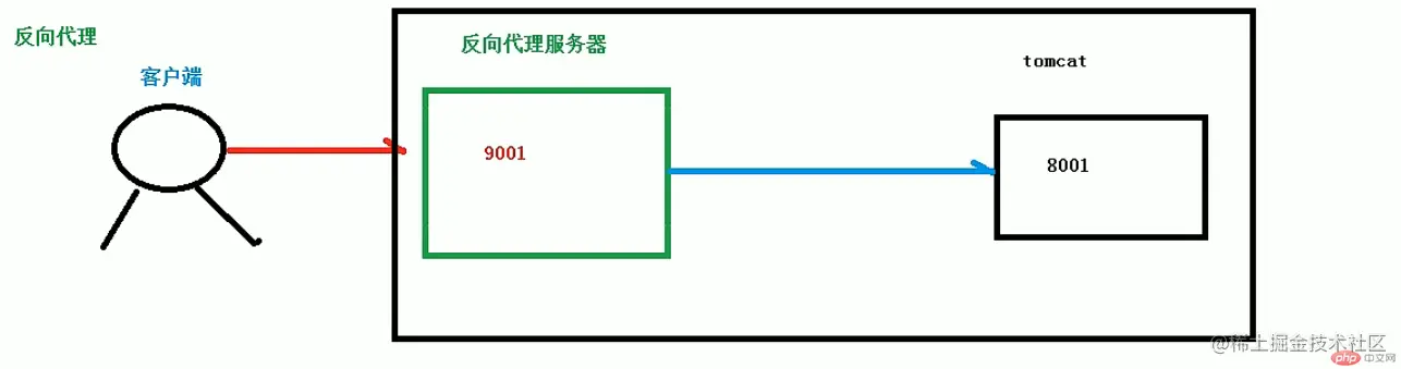 反向代理:客户端只需要将请求发送给反向代理服务器,由反向代理服务器去选择目标服务器获取数据返回给客户端。