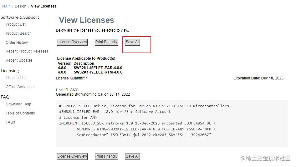 7.点击Save All按钮,会将license文件下载到本地。