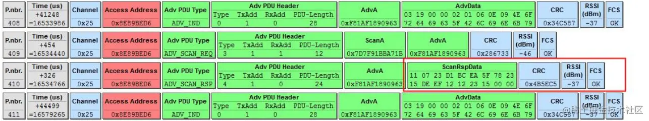 而扫描响应包是为了给广播一个额外的 31 字节数据,用于主机 主动扫描 情况下,反馈数据使用。