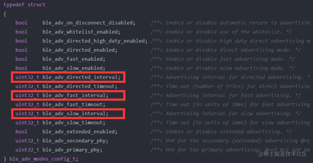 init.config.ble_adv_fast_interval = APP_ADV_INTERVAL; // 广播间隔