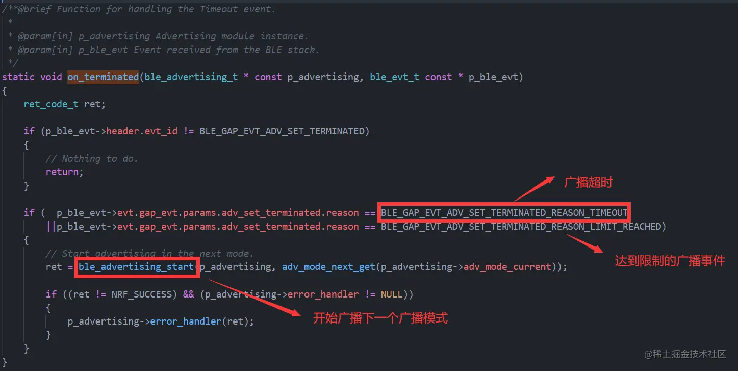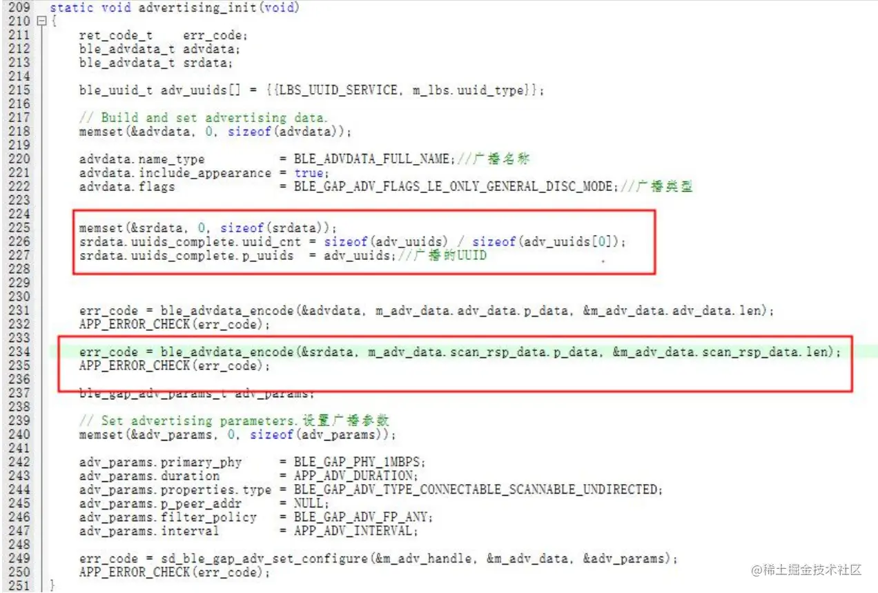 设置完广播参数后,通过函数 ble_advertising_init() 配置广播参数到协议栈中。