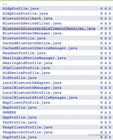 在 Android 的 framework 目录下封装了很多实用的蓝牙组件,不过这些类是 framework 的私有类,并不能通过应用层的Android API直接调用,实际项目中根据需要将这些类移植到应用中再做修改。不建议直接修改 framework 层的代码!这样可能会导致一些原生应用无法正常运行。