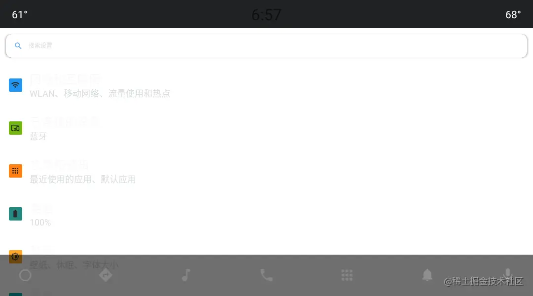 有车载经验的同学,应该都见过下面这种字体颜色怪异的系统设置,这其实是手机的系统设置移植到车载系统中的样子。一个车载 Android 项目启动时,大都会选择保留功能更全的手机原生系统设置,而不是使用车载版本的系统设置。