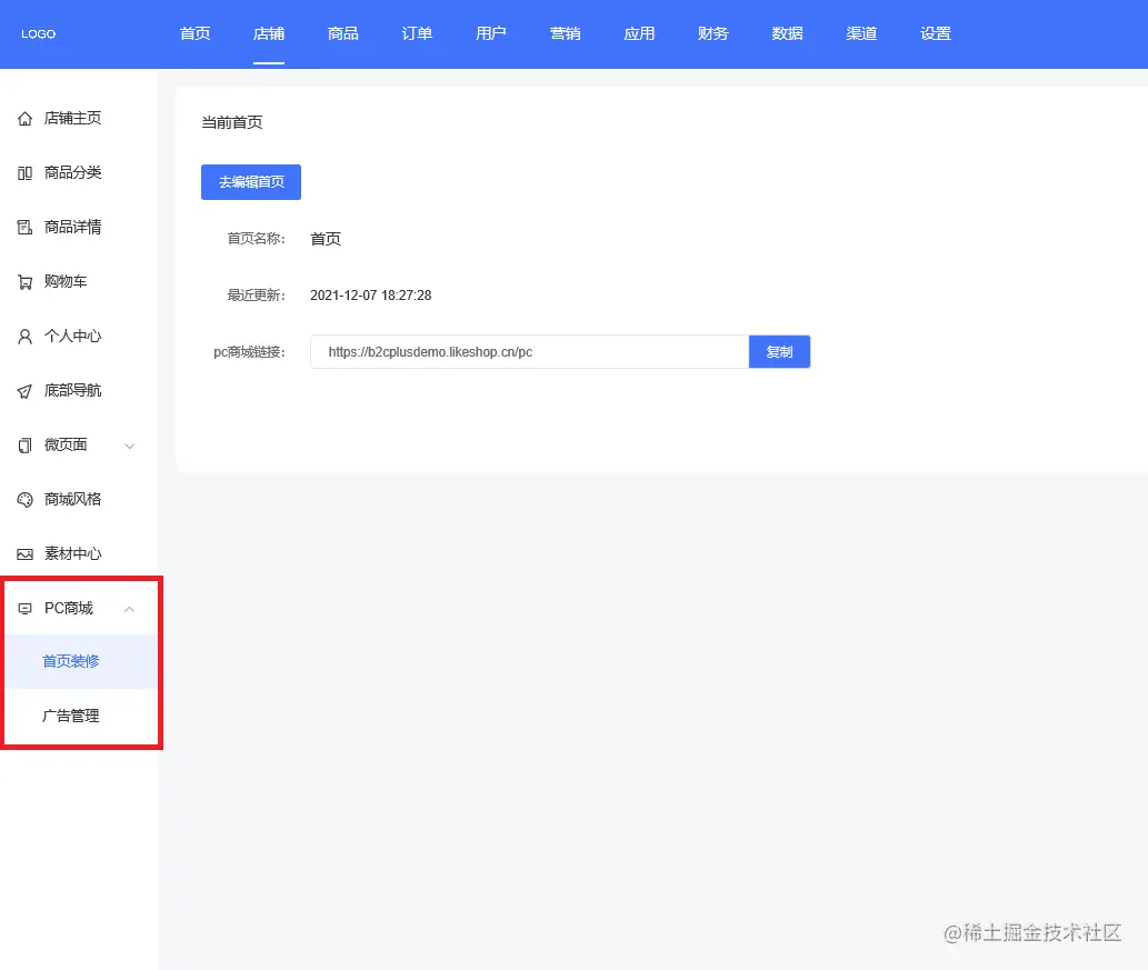 PC商城有首页装修和广告管理,商家可以根据自己的设计来装修PC商城的首页,如下图所示: